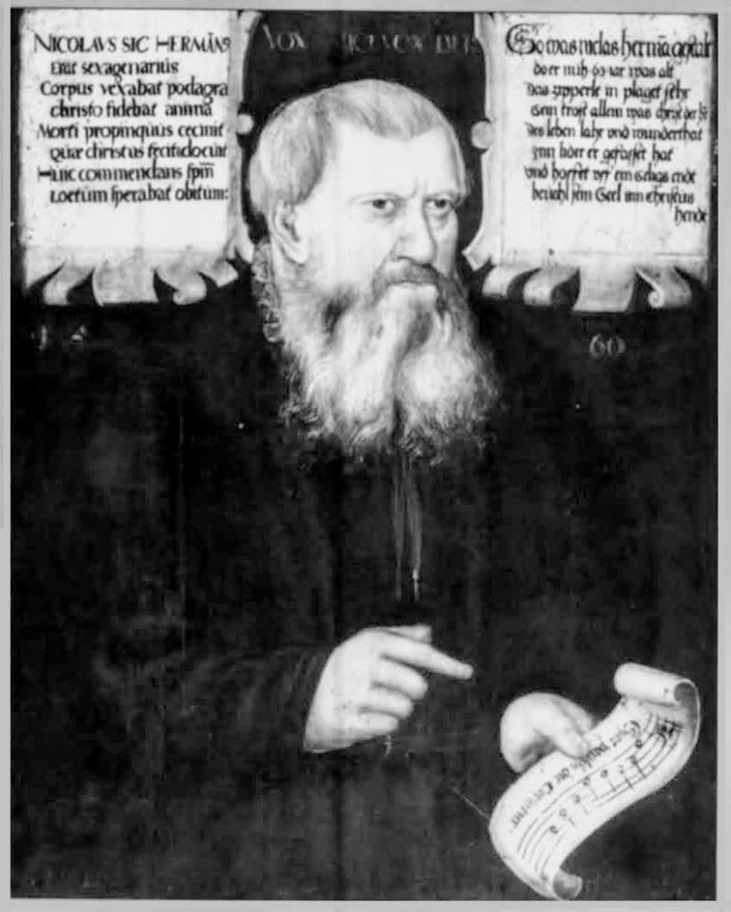 Herman’s teksten en melodieën zijn eenvoudig, maar niet simplistisch. Een goed voorbeeld is het onderwerp van deze pagina, maar dat geldt ook voor de andere genoemde liederen. Over de berijming van de bijbelverhalen kun je twisten, maar dat was dan ook puur onderwijsmateriaal, 4 of 7 regels, met een lijst met melodieën die geschikt zijn. Deze bijbelse-verhalende-liederen heeft hij tegen het eind van zijn leven gemaakt en gebundeld, toen hij ziek thuis zat (geplaagd door hevige en zeer pijnlijke jicht). Het voorwoord tekent hij met Niclas Herman, der alte cantor…. Ze zijn na zijn dood uitgegeven en talloze malen herdrukt. Even terzijde: dus niet bestemd voor de kerkdienst (liturgie), maar voor alle vormen van ‘godsdienstoefening’ daarbuiten.