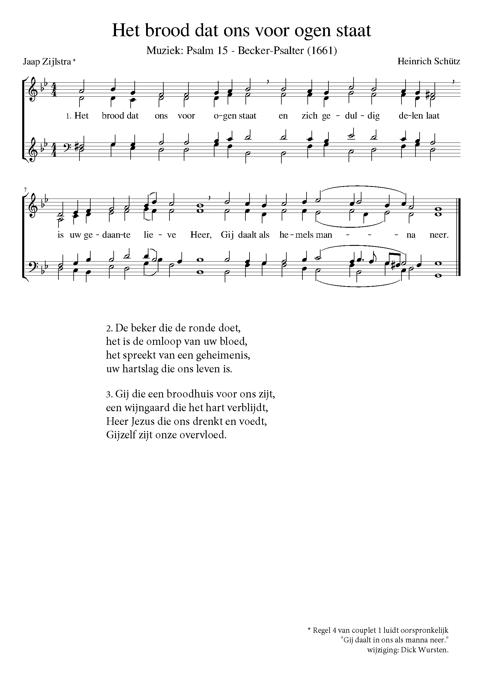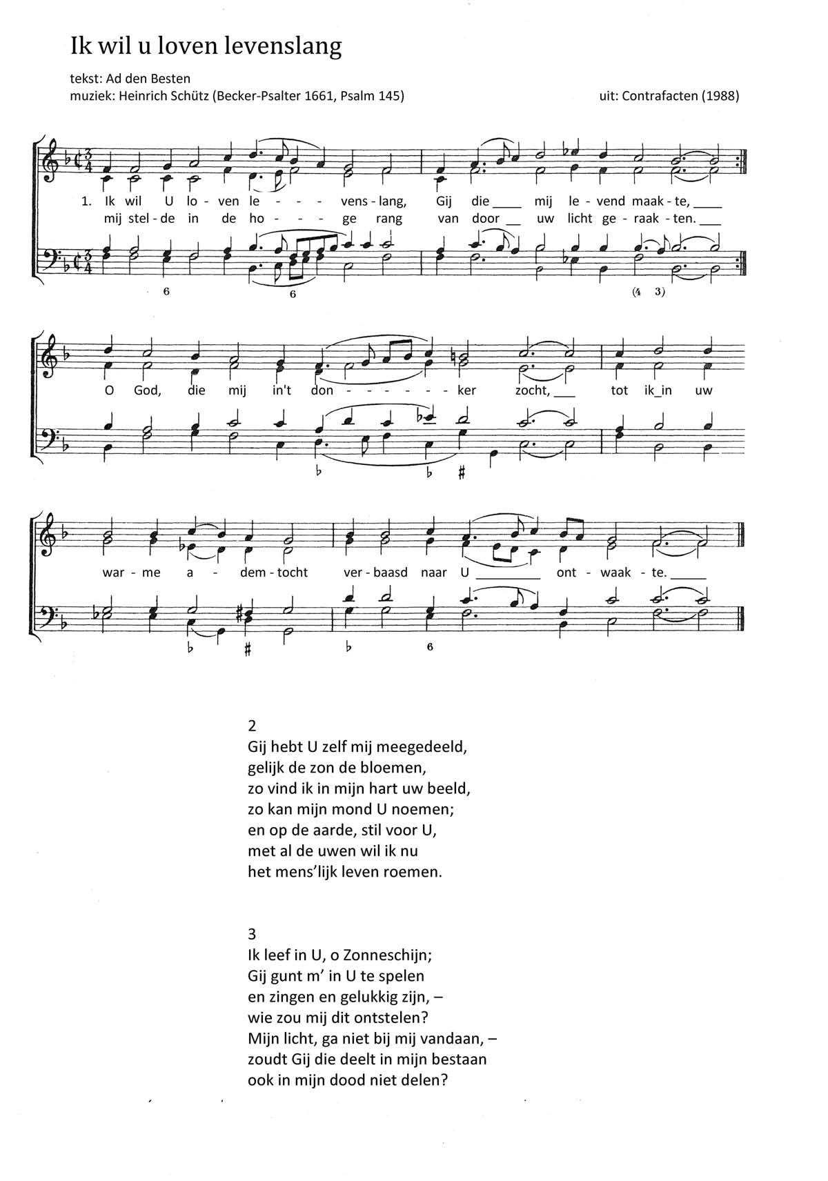 Ad den Besten: vrije tekst geïnspireerd door psalm 145. Beetje gedateerd qua taal, maar de melodie/zetting doet je dat snel vergeten. Luisterlied dus. |