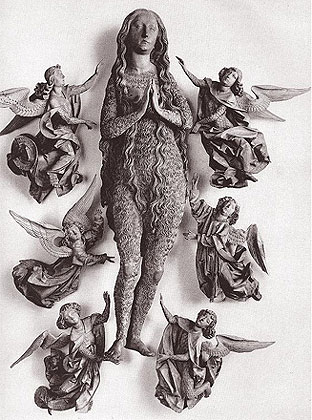 | (rechts) Maria Magdalena omringd door engelen. Tilman Riemenschneider, 1490-92; Bayerisches Nationalmuseum, München. | ||