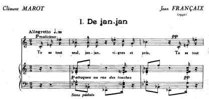 1938: Trois épigrammes (one of C. Marot, A une Demoiselle malade), the others by C. d’Orléans, J. du Bellay), 4vv, str qnt, (the French Song Companion gives as date 1961, typo?). A Special page on this website is devoted to this poem: Ma Mignonne