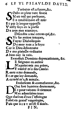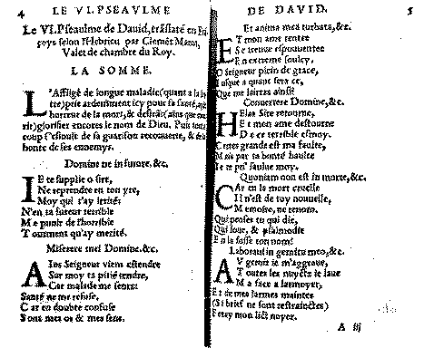 Note on the ‘liturgical extras’ (French poems by Clément Marot)Canticle of Simeon, Decalogue, Creed, Ave Maria, Pater Noster and prayers before and after dinner. (for texts click 'up')