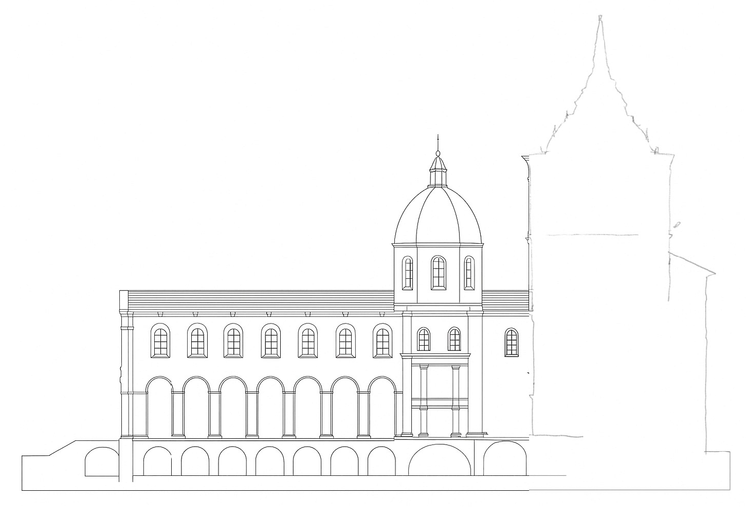 The church itself is full with epitaphs and funerary monuments, many of them placed on the wall, engraved in marble. According to Audebert’s report Marot’s epitaph was located inside the church, on a stone in the wall, not far from the door (‘tout proche au dedans de l'église en une pierre longuette qui est dans la muraille’). Both walls close to the door were equipped with inscriptions. To the right (when entering the church) there is an inscription, beautifully carved in marble with an elevated border. Above the text is the coat of arms of a noble family (the inner part is vanished, only the outside shape is visible). It must belong to the marquisat of Ceva, since according to the Epitaph a marquis of Ceva, named Cristoforo, was buried there (‘Christophorus marchio Cevae’).26