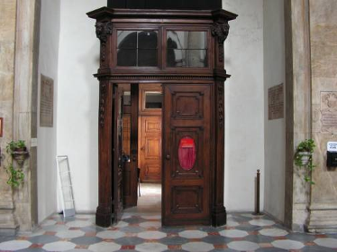 - To find Jamet’s epitaph one should enter the church through that door, and look for the epitaph, since it should be nearby (“duquel l'Epitaphe estoit tout proche au dedans de l'église”);