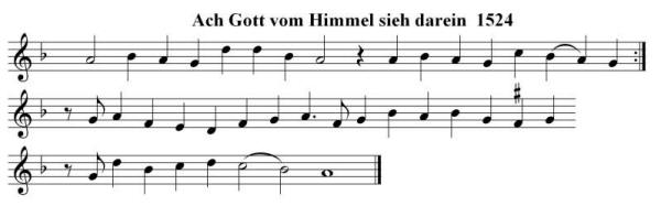 1 Ach Gott, vom Himmel sieh' darein Und lass' dich des erbarmen, Wie wenig sind der Heil'gen dein, Verlassen sind wir Armen: Dein Wort man laesst nicht haben wahr, Der Glaub' ist auch verloschen gar Bei allen Menschenkindern. |