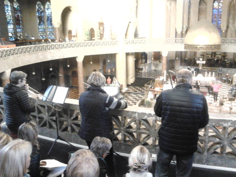 Andrea, die na een periode in Zuid-Duitsland (met/bij Orlandus Lassus) te hebben gewerkt heeft deze vorm van samen musiceren op afstand verder ontwikkeld. Na zijn dood heeft zijn neef (oom-zegger) Giovanni Gabrieli deze vorm verdiept en vervolmaakt. De muzikanten van de San Marco (zangers, blazers, organisten) beheersten deze wijze van musiceren natuurlijk volkomen . Logisch, ze hebben ze zelf ontwikkeld. Dat is anders voor ons. Voor ons is dit zeer vreemd en aartsmoeilijk. Een experiment dus…