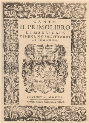 In 1611, aan het einde van zijn 2-jarige studieverblijf, legt Sch?z zijn masterproof af : 19 vijfstemmige italiaanse madrigalen. Trots meldt hij dat niet alleen zijn leraar ?praeceptor?, zoals Sch?z Gabrieli noemt, er tevreden over was, maar ?dat vele toenmalige vooraanstaande musici erop aandrongen dat ze gepubliceerd zouden worden. En zo geschiedt. Zijn opus 1 wordt gedrukt bij de beste muziekdrukker van Venetie: Angelo Gardano: Il primo libro de madrigali di henrico sagittariio allemanno.