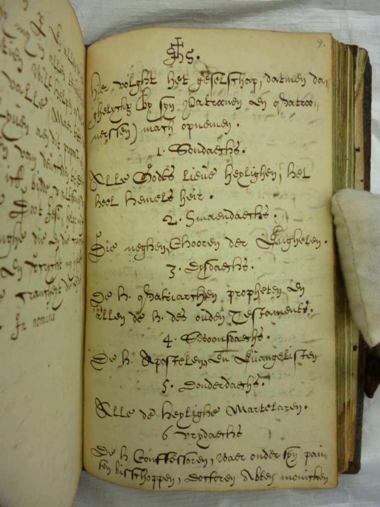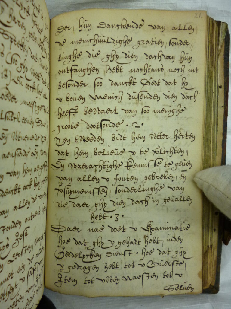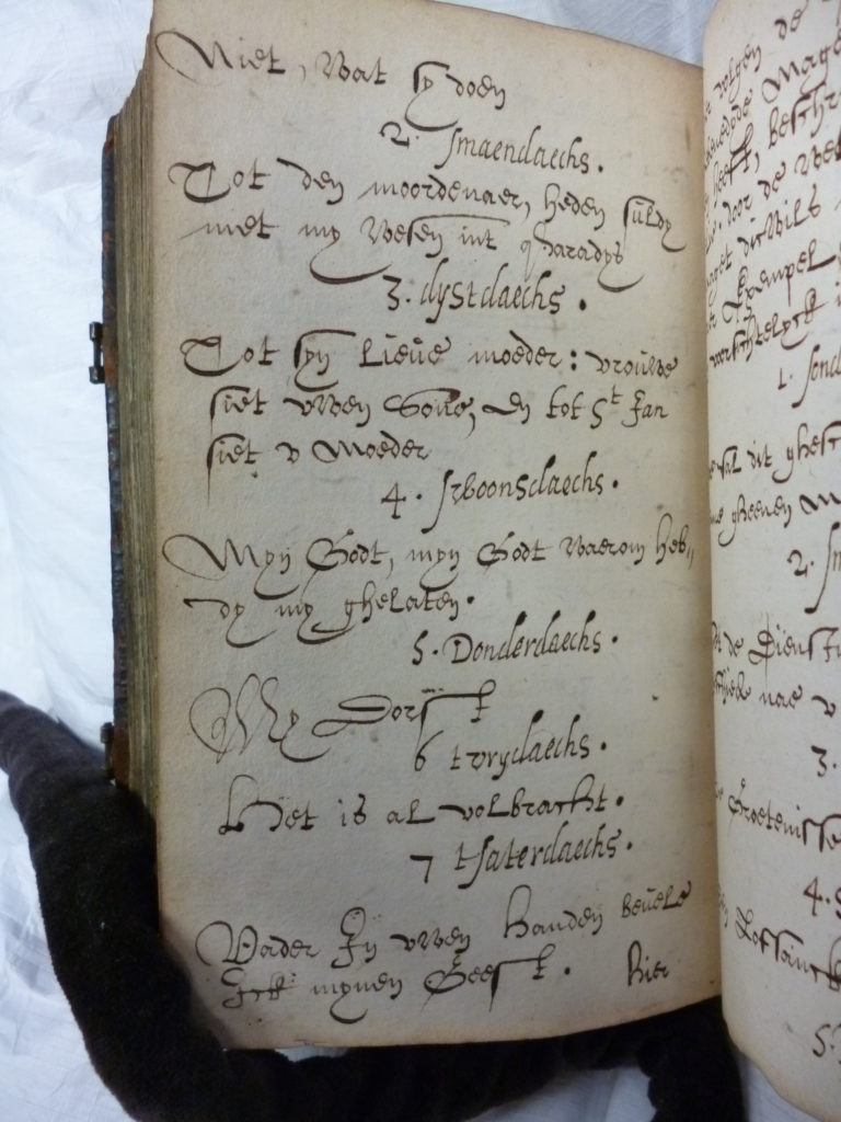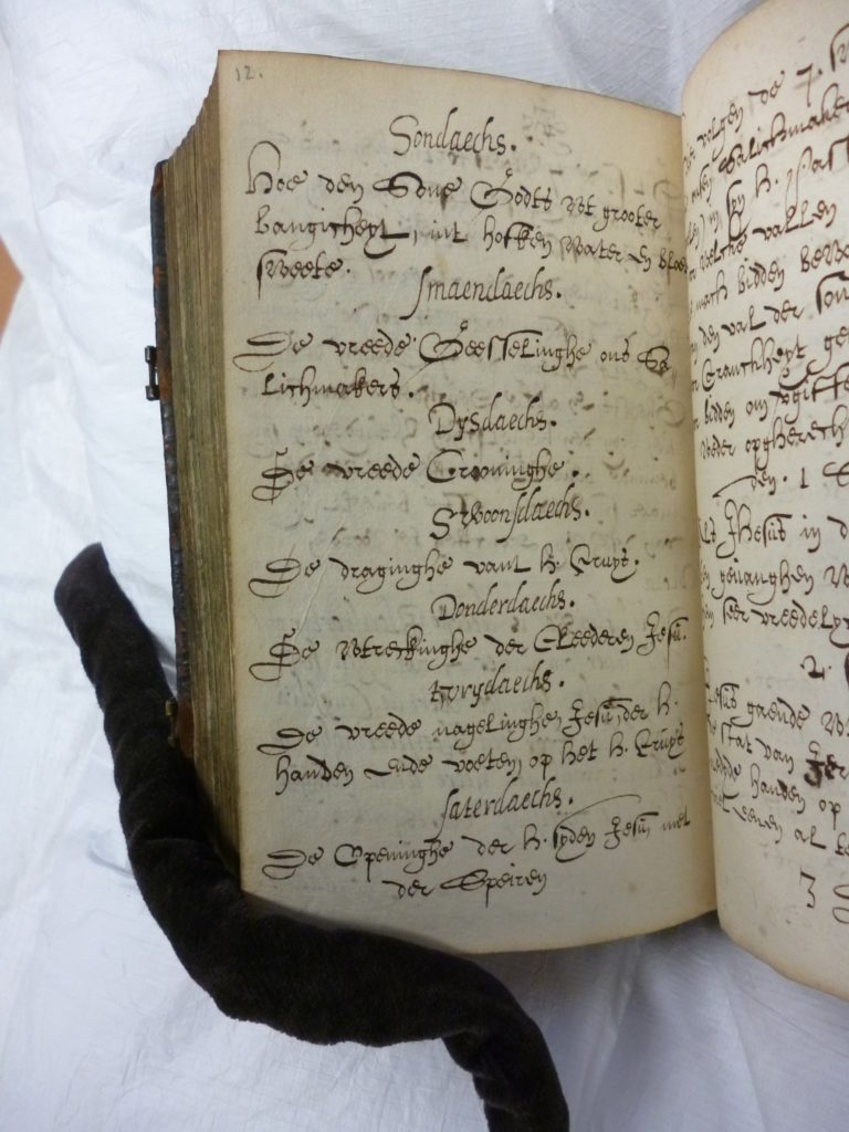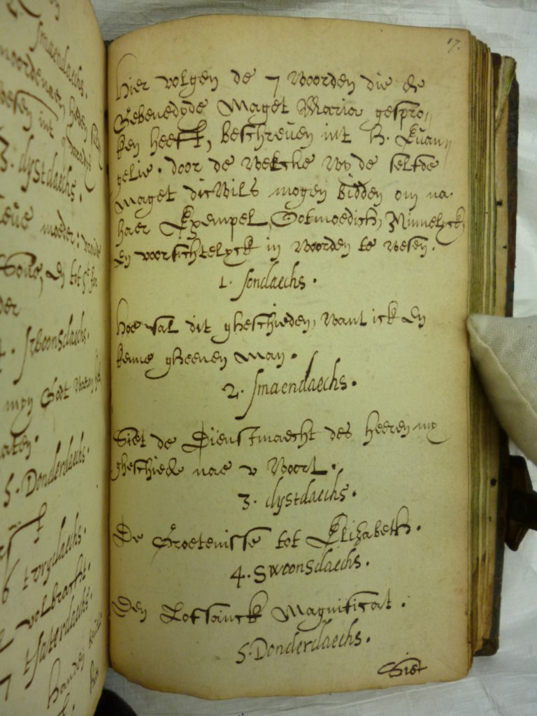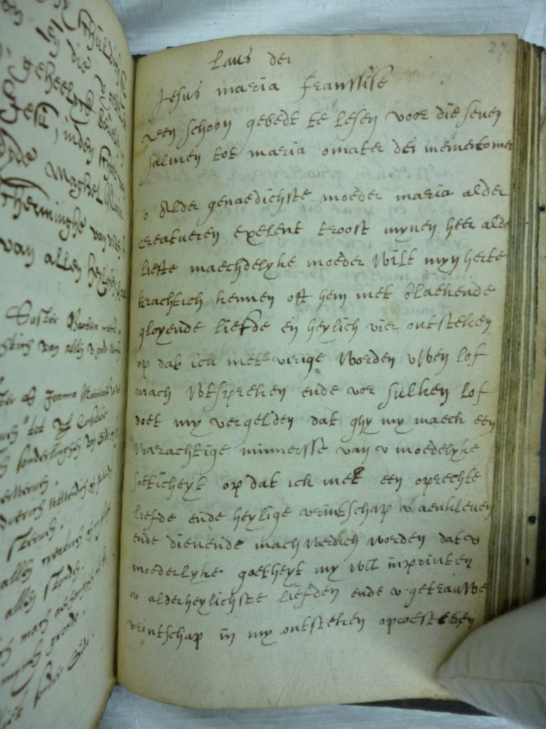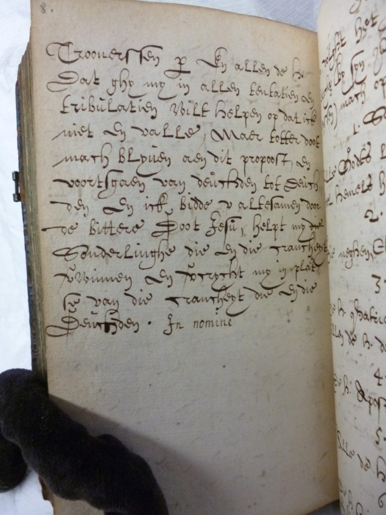 In dit boek bevinden zich achteraan 84 onbedrukte bladzijden waarop met de hand allerlei geestelijke oefeningen, gebeden, raadgevingen en regels zijn geschreven voor een Annuntiaat te Antwerpen. De bron van het eerste deel van deze teksten blijkt Jeanne Moerentorff te zijn. Zij meldt op p. 25 dat ze dit heeft laten opschrijven voor de ‘Allerliefste Suster Barbera’, die ze in een rijmend gebed aanspreekt en bidt om ook voor haar te bidden.