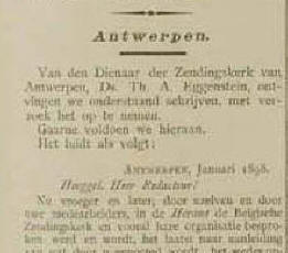 in de door hem geredigeerde kerkbode, de Zendingskerk te Antwerpen zich te