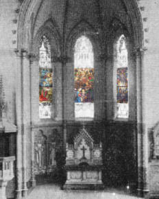 Op de foto uit 1904 zijn de 3 koorvensters te zien. In een architecturaal