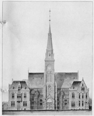 1879: Een tweede Duitse kerk te Antwerpen wordt opgericht Op 21 september 1879 leidde pastor Fuchs van de Noorse (Lutherse) kerk de dienst waarin Pastor Meyer werd ingeleid in zijn ambt. De tweede Duitse kerk van Antwerpen begon aan een spectaculaire groei. Reeds in 1882 telde de gemeente 286 leden, was een officieel statuut opgesteld en in 1886 kon de voorganger een levenslang contract worden aangeboden. Voor de erediensten maakte men gebruik van de Noorse Zeemanskerk en de Mariners Club (Italiëlei 21, eigendom van de British Sailor's society, nu een meubelshowroom). In 1888 waren de contacten met de eerste Duitse kerk al weer zo goed, dat een gedachtenisdienst ter ere van het overlijden van de Duitse keizer in aanwezigheid van beide geestelijken, Seitz en Meyer, kon doorgaan in de Lange Winkelstraat. Bemiddeling door de consul, Dr. Arendt had dit mogelijk gemaakt. 1890: aansluiting bij de Synode, staatserkenning en kerkbouw. In 1889 werd de weg naar aansluiting bij de synode van de Belgische Protestantse, Evangelische kerk (PEKB) ingeslagen (27 juni goedgekeurd). Een koninklijk besluit (15 februari 1890) bracht de staatserkenning van de gemeente, die van dan af als Eglise Protestantse évangelique allemand d’Anvers door het leven gaat. Op 13 mei 1890 kwam de bestuursraad (bestuur van de kerkfabriek), bestaande uit de heren A. von Bary, W. Bertrand, J.W. Konitzky, A Schuchard, H.E. Tieman (e.o. Pastor H. Meyer) voor het eerst samen en kon meteen 10.000 frs. in ontvangst nemen, geschonken door Frau Generalconsul Kind, nadrukkelijk bestemd voor de bouw van een eigen kerk. Toen ook Frau Wwe Bunge met een even groot bedrag over de brug kwam ter gelegenheid van haar 70ste verjaardag [Protokoll ordentliche Sitzung 8-10-1890) kon de weg ingeslagen worden naar de bouw van een eigen godshuis. De behoefte daaraan was groot. In de 4 zomermaanden vergaderde men ’s morgens vroeg in de kerkzaal van de Mariners church, in de overige 8 maanden maakte men dankbaar gebruik van de Noorse Zeemanskerk, maar moest natuurlijk de diensten voor de Noorse zeelieden laten voorgaan. De Duitse diensten konden daarom pas om 12 uur beginnen. Dit ongunstige tijdstip, gecombineerd met de aanwas van het ledental tot 800, waardoor de beschikbare ruimtes te klein werden leiden tot het besluit van de Kirchenvorstand om niet langer te wachten, vooral toen opnieuw een toezegging binnenkwam van frs. 10.000 (E. Schulte-Hülsenbeck). 1891: het besluit om te gaan bouwen We lezen in het notulenboek van de kerkenraad (Kirchenvorstand) [Ordentliche Sitzung von 21 Januar 1891] „der Herr. Alf. Schuchard [habe] auf Empfehlung des Herrn H. Tieman em. mit dem Architekten Hertogs Rücksprache genommen". Ook heeft dezelfde al wat prospectie gedaan en bij notaris Vander Schooten een optie van 6 maanden genomen op een terrein dat aan het einde van rue Floris (Florisstraat, de notulist schrijft Florus) ligt. Hij heeft zelfs al een bouwplan bij zich, waarbij de geraamde kosten voor kerkbouw en terreinaankoop op frs. 120.000 komen. Voldoende reden voor de Kirchenvorstand om op 6 maart 1891 aan de gemeentevergadering toestemming te vragen om te mogen gaan bouwen. De gemeentevergadering besluit hiertoe met eenparigheid van stemmen. Op 1 mei 1891 worden de plannen van architect Joseph Hertogs besproken en goedgekeurd. De geraamde kosten zijn inmiddels al gestegen tot frs. 185.000. Op 31 juli wordt de optie omgezet in de aankoop van het terrein. Op 28 januari 1892 wordt gemeld dat er toestemming is om de Bexstraat aan te leggen op het aangekochte terrein [= verbindingsweg van Florisstraat met het net nieuwe Stadspark]. Op 1 mei begint die aanleg en op 5 mei werd de intekening op de bouw uitgeschreven, die op 25 mei op het stadhuis officieel werd toegekend aan de firma J.H. Bolsée & C". Overigens werd de toestemming tot de aanleg van de Bexstraat enkel bekomen, omdat H. Alb. von Bary de hele terrein-exploitatie voor zijn rekening nam.