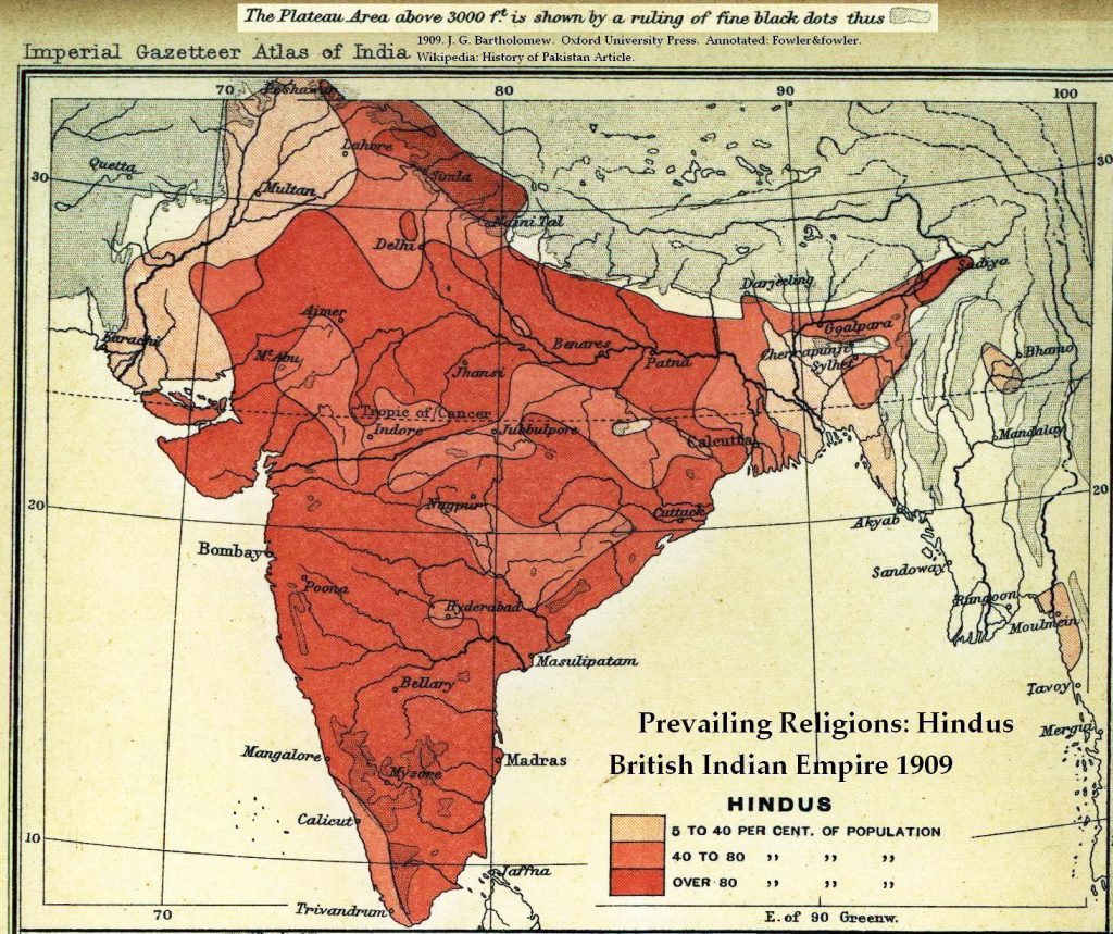 De moslims (de grenzen van Oost en West-Pakistan = Bangladesh, kun je al bijna invullen. Ook ziet u dat het kustgebied van Birma ook toen al islamitisch was – Rohingya)