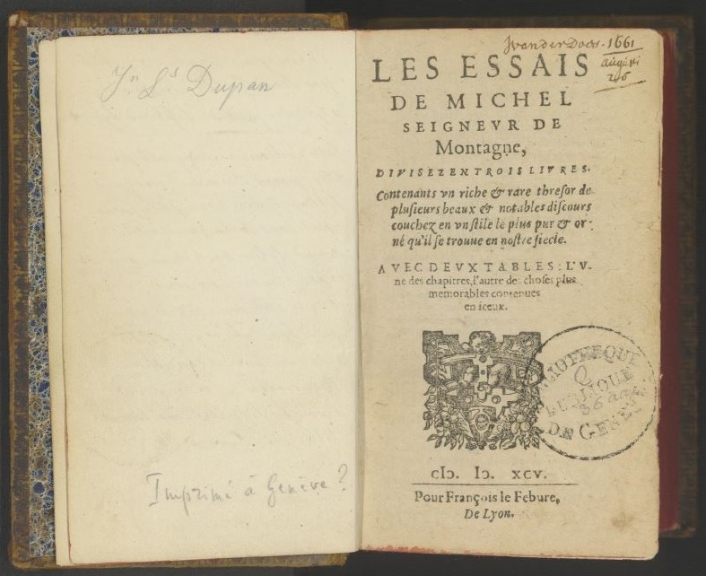 Apologie van Raymond Sebond, 1580, Essays II,12, vertaling: Hans van Pinxteren – [b] = toevoegingen van Montaigne zelf in de editie van Les Essais van 1588. De laatste alinea kunt u hier in het origineel lezen