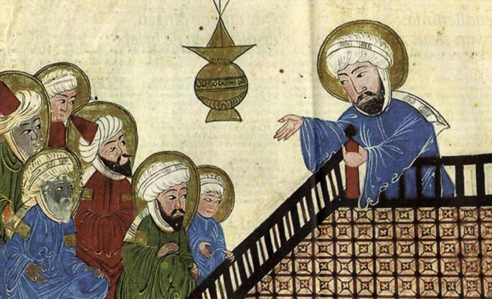 De profeet Mohammed spreekt tot zijn volgelingen
