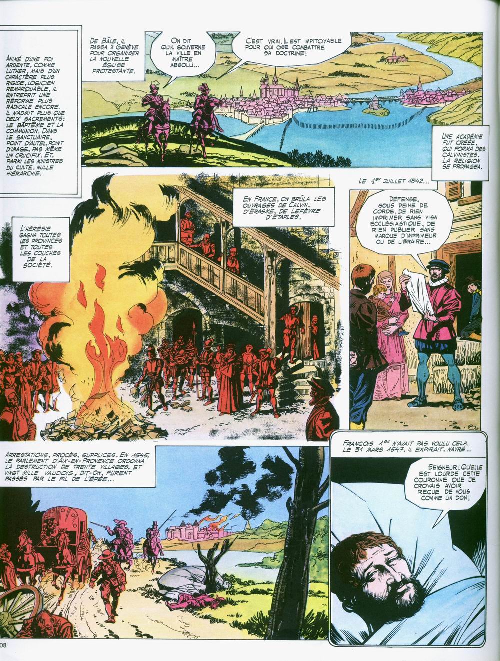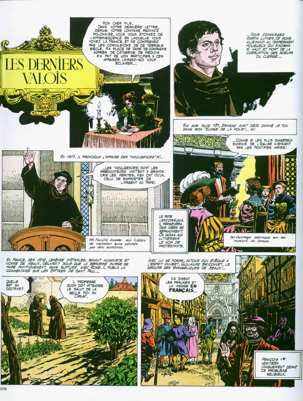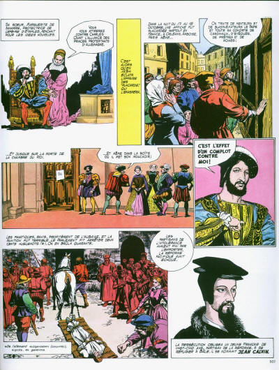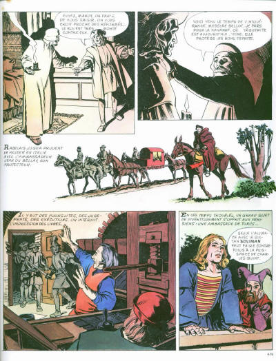 | In the memorable Larousse edition L'Histoire de France en bandes dessin�es, first published between 1976-1978 and republished in 2008, the life and times of Marot are of course prominently represented. His employer was the King of France en Marot not only witnessed the events but was (took) part of (in) it. | |