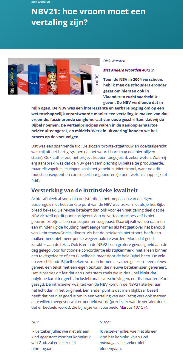 ‘NBV21: hoe vroom moet een vertaling zijn?’ in: Met Andere Woorden 40/2