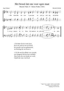 In 1988 verscheen, op initiatief van Ad den Besten, een prachtige bundel met 66 teksten op melodieën van Heinrich Schütz (Becker-Psalter 1661). De teksten zijn soms beneden peil (sorry hoor), maar de idee om hoogkwalitatieve muziek voor gebruik in de eredienst (door koor of gemeente of ...) beschikbaar te stellen aan de gemeenten, blijft prijzenswaardig.