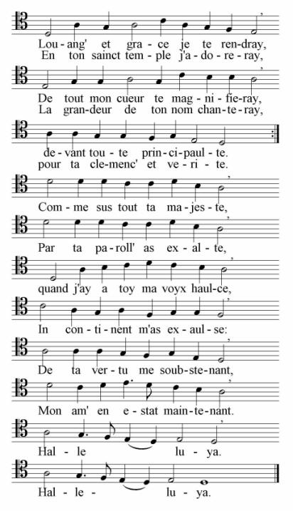 2. De nieuwe melodie van psalm 138, nodig voor de nieuwe tekst van Clement Marot (die dus bovenstaande tekst en melodie naar het vergeetboek heeft verwezen) is volgens hardnekkige overlevering verwant aan een chanson van diezelfde Clément Marot (opgenomen o.a. in Pierre Attaignant; Trente huit chansons musicales, Paris 1530): Une pastourelle gentille. Een Noël. Dit is de melodie die wij vandaag nog zingen.