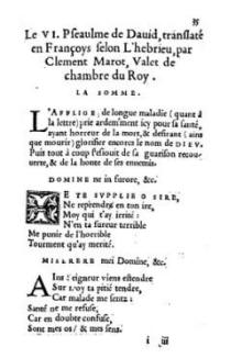 [Bron voor de tekstedities: édition critique van G. Defaux, eerst in het verzameld werk van Marot (deel 1 1990, deel 2 1993), dan in 1995 nog eens apart voor de psalmen, in de prestigieuze reeks van Honoré Champion; Textes de la renaissance... overigens een tamelijk slordige editie, zeker in de varianten]