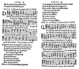 below: Psalm 1 in the 1548 hymnbook edition (Lyon)