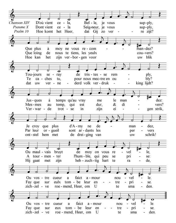 Psaume X (vóór 1541, misschien 1538 (suggestie van G. Defaux) uit Trente Pseaulmes de David (1541/1542)