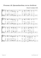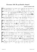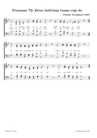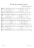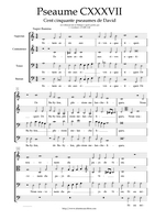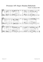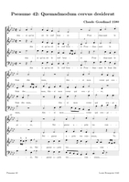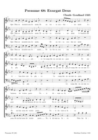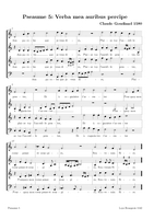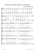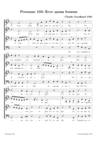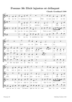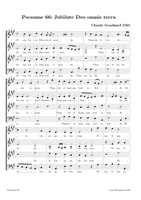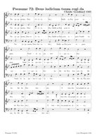 Claude Goudimel is zeker de bekendste (zij het wel een beetje 'per ongeluk') van de talloze 16e eeuwse componisten die de Geneefse psalmen hebben getoonzet. Zijn eenvoudige 'stem-tegen-stem' zettingen (SATB met (meestal) de melodie in de tenor) zijn het meest bekend. Dat hij ook 'versierde' (contrepoint fleuri) zettingen heeft gemaakt en zelfs echte 'polyfone' versies (motetten) is iets minder geweten. Hieronder een tabel met een selectie van diverse zettingen (PDF) die ik op het internet vond, met onder meer veel dank aan Arno Rog. Wat de franse tekst betreft: meestal heeft men de oude spelling gehandhaafd: let er dan op dat u de tussen-s niet uitspreekt (dat is een etymologisch restant uit het Latijn): Dus niet in Psalm 68 Que Dieu se mon-S-tre..., maar gewoon Que Dieu se montre...Als u klikt op de afbeelding opent u de PDF (downloaden: rechtermuisklink, bewaren als)