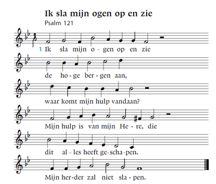 Tekst (Vertaling Willem Barnard, voor de Nieuwe Psalmberijming zoals die opgenomen is in het Liedboek voor de kerken). Barnard brengt hulde aan de Oude Berijming in het zeer geliefde laatste couplet (zegenbede), waarvan hij de eerste regel overneemt: De Heer zal u steeds gadeslaan. Continuteit in een zangtraditie.