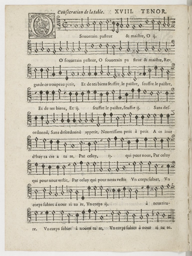 Below the the title page of the Tenor partbook and the Tenor part of the first 'Grace', entitled: Consecration de la table.