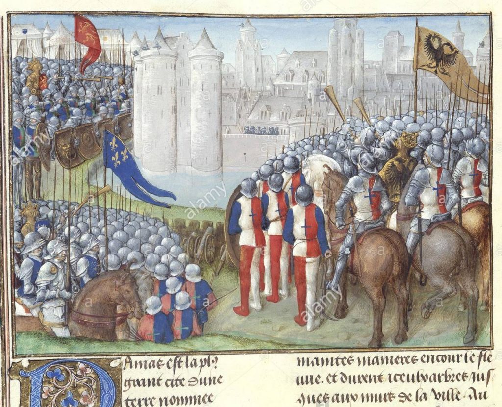 The TEXT is called the “Chronique d’Ernoul et de Bernard le Trésorier”. A misleading title, since the narration of the two clerics’ mission was written neither by Ernoul nor by Bernard. This ‘Chronicle’ has survived in the form of continuations added to a French translation of William of Tyre’s Chronicle of the crusades, the Historia rerum in partibus transmarinis gestarum, who had related the history of the Holy Land from Muhammad to 1184. William’s chronicle was translated into French in the first quarter of the thirteenth century (so very close to the events narrated here); To some of these translations a number of other texts are added (in French:  les continuations), apparently compiled by well informed members of the lay nobility of the kingdom. Start reading below the image.